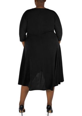 Robbie Bee Plus Size 3 4 Sleeve Tie Front Fit And Flare Midi Dress Belk
